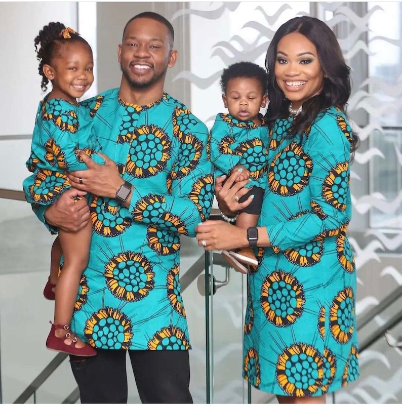 Family Matching Ankara Outfits – Turquoise & Yellow